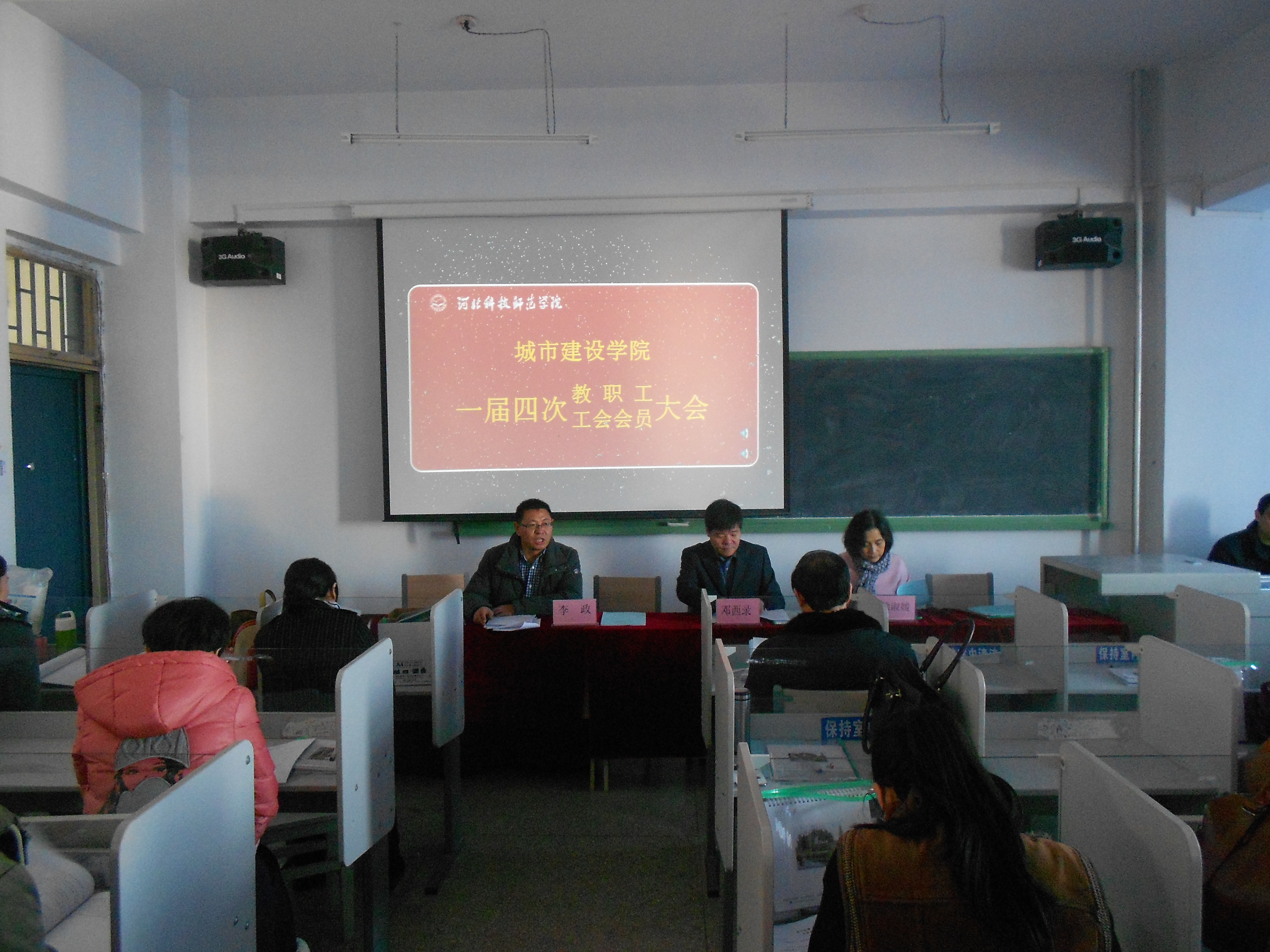 2013年12月26日,太阳成tyc33455ccwww一届四次两代会在老教学楼402举行。大会听取了经理2013年度公司工作报告,提案工作报告,审议通过了太阳成tyc33455ccwww数字化建筑设计实验室使用管理规定和教师年度教学质量考核实施细则。