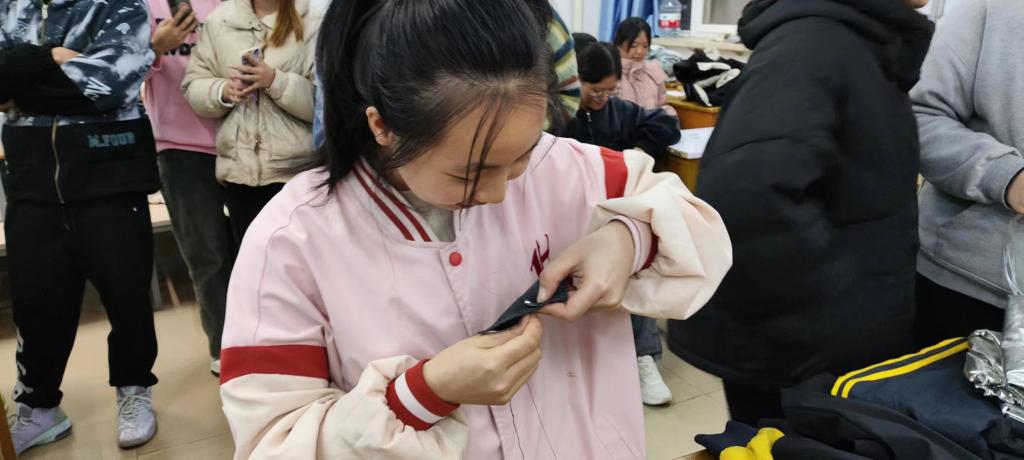 比赛要求3人一组,三人接力完成缝扣子、叠衣服、收纳衣服三项任务,用时最少队伍获胜。一声令下,每组第一位选手立刻开始穿针引线,微微颤抖的手指和紧抿的嘴唇透露出他们内心的紧张和忐忑,每名队员都全神贯注地关注着比赛的每一步,随时准备下一项任务的开始。比赛现场气氛热烈,笑声、欢呼声、督促声.....伴随着最后一只秒表的暂停,本次活动完美落幕。