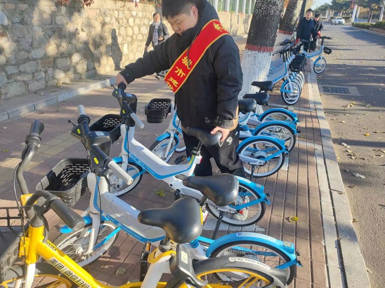 志愿者们利用课余时间,来到城市街头,劝导市民文明用车,帮助市民将乱停放的单车搬到指定地点。这些志愿者们认为,通过自己的行动,不仅能够为城市的环境贡献一份力量,也能够提高市民的文明素质。活动中,大家充分发挥了团队合作和集体精神,有人负责搬运单车,有人负责整理车筐。经过共同的辛勤努力,原本杂乱无章的停车点变得井然有序,满目疮痍的共享单车也焕发出新的生机。