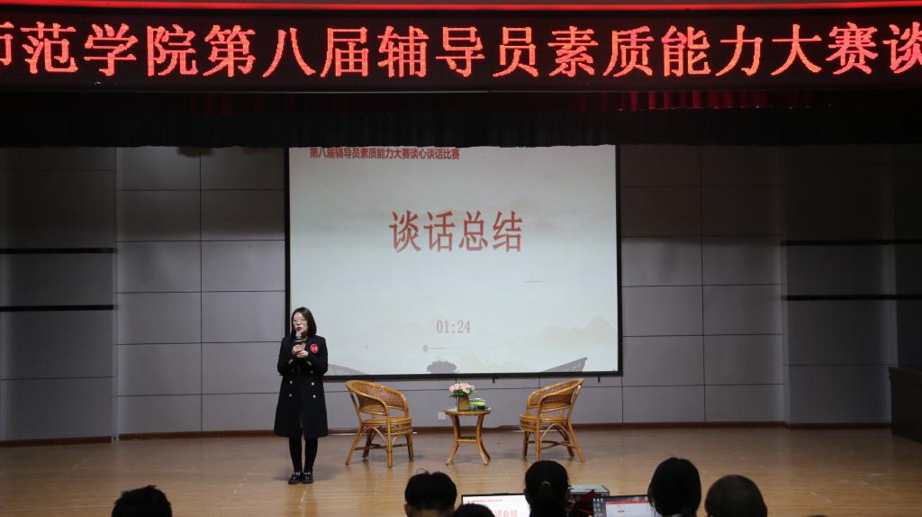 本比赛通过与员工谈心谈话、自我总结、回答“观察席”提问三个环节予以开展,主要考察辅导员对员工特征、员工成长成才规律的把握,以及对员工的教育引导与解决实际问题的能力。比赛现场模拟真实场景,参赛选手与员工开展谈心谈话。谈话围绕员工学业、职业发展、人际关系处理、思想教育和价值引领、员工党员发展、员工日常事务管理、心理健康教育等工作进行。通过选手的精彩展示和评委们的公正评判,共评出一等奖2名、二等奖3名、三等奖1名。