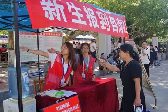 报到当天,随着一批批新生的到来,志愿者们开始了紧张有序的工作。志愿者们身穿红马甲,手持迎新牌,面对前来咨询的新生,志愿者们友好耐心解答,给新生指引方向、协助搬运行李、引领新生办理报到手续。他们以亲切的笑容、周到的服务对待每一位新生和家长,为新生报到提供了高质量的志愿服务。“奉献、友爱、互助、进步”的志愿精神在志愿者们的身上展现得淋漓尽致。