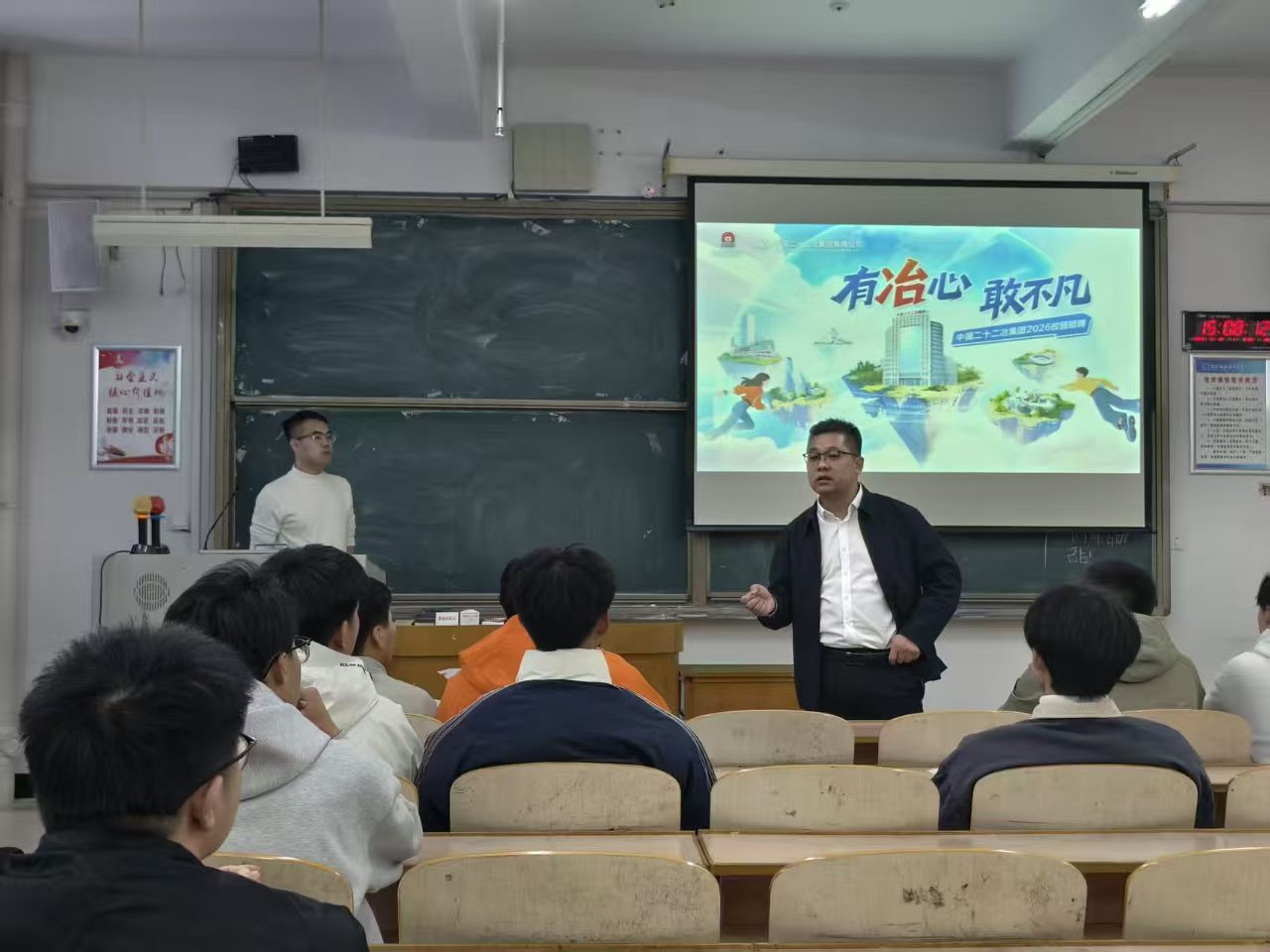 讲座特邀中国二十二冶集团有限公司代表姚德建(2007届工程管理专业毕业生,现任职中国二十二冶集团广东公司总经理助理),为同学们介绍企业发展平台及岗位需求。作为以工程总承包、城市更新、技术装备制造等为主营业务的大型综合企业,中国二十二冶近年来持续推动“两步走、两跨越、两翻番”战略,实现了规模与质量的双重跃升。企业代表详细说明了薪资待遇、区域布局及招聘要求,帮助员工充分把握就业机遇。