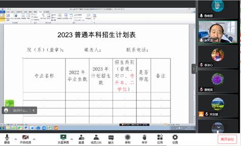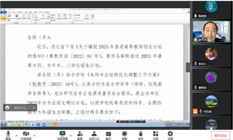 2022年10月13日下午15:30,公司召开讨论公司2023年招生计划和进人计划线上会议。太阳成tyc33455ccwww全体领导班子成员、各专业带头人、教学部正副主任、实验室正副主任参加会议,朱天志经理主持了会议。